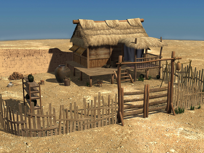 茅草屋因其讓人聯(lián)想起素樸的農(nóng)耕生活,最早的農(nóng)耕文化起源于遙遠(yuǎn)的上古時期。勤勞的先民們在稻谷芬芳的田野上,從地表向下挖出方形或圓形的穴坑,將捆綁的樹枝或稻草沿坑壁圍成墻,簡陋地抹上草泥,屋頂上搭些草木,這便是人類最早搭建的用以躲避風(fēng)雨、躲避禽獸災(zāi)害的屋舍。聚落的先民們擺脫了對自然的先天依賴,從洞穴中走出來,創(chuàng)造了自己安定的棲居。他們用笨拙的石刀、石斧、石鐮、石盤躬耕勞作,過著日出而作,日落而息的農(nóng)耕生活,人類跨入了原始農(nóng)業(yè)。